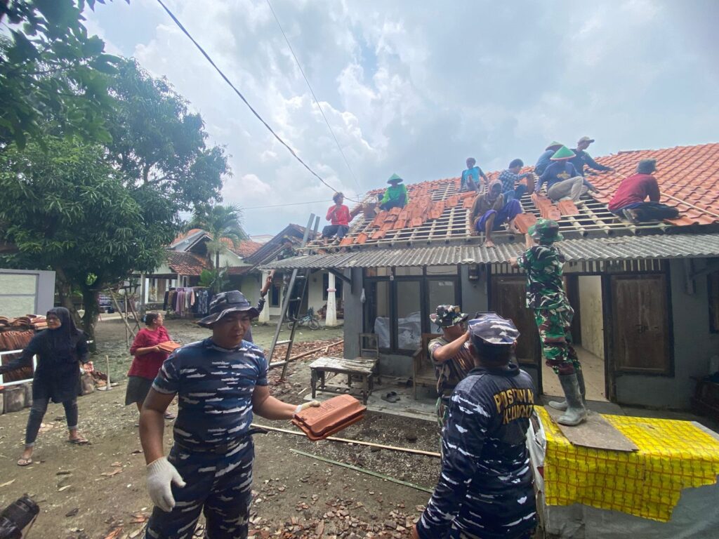 BREBES, BentangNews – Program Rehabilitasi Rumah Tidak Layak Huni (RTLH) dalam kegiatan TNI Manunggal Membangun Desa (TMMD) Reguler ke-127 menunjukkan progres signifikan. Saat ini, pembangunan telah memasuki tahap pemasangan atap rumah milik warga di Desa Cikuya Kecamatan Banjarharjo Kabupaten Brebes., Minggu(15/05/2026).