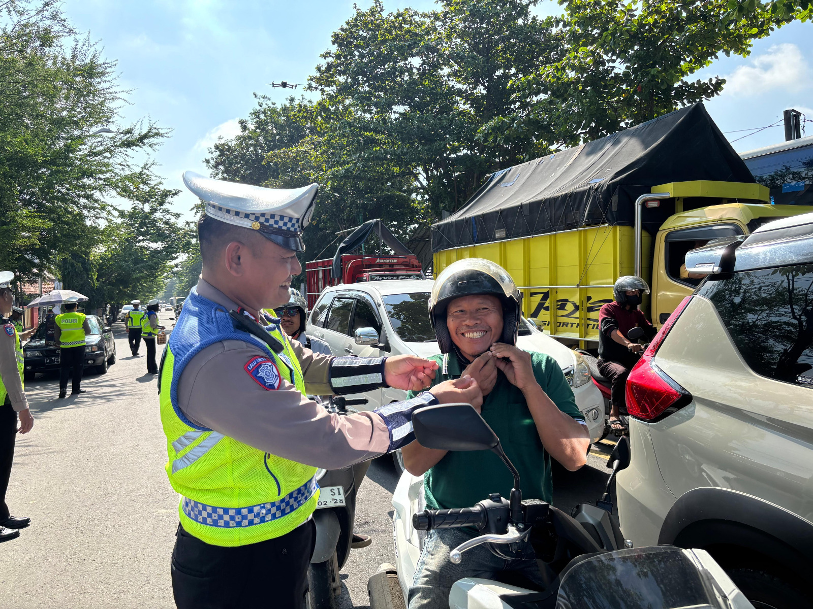 Dalam kegiatan yang berlangsung Selasa kemarin, puluhan personel Satlantas terjun langsung membagikan brosur, stiker, dan membentangkan spanduk imbauan. Uniknya, pengendara yang kedapatan disiplin dan lengkap secara surat-kendaraan mendapatkan apresiasi berupa cokelat dan bingkisan menarik. Sebaliknya, pelanggar aturan diberikan teguran humanis agar lebih tertib di kemudian hari.