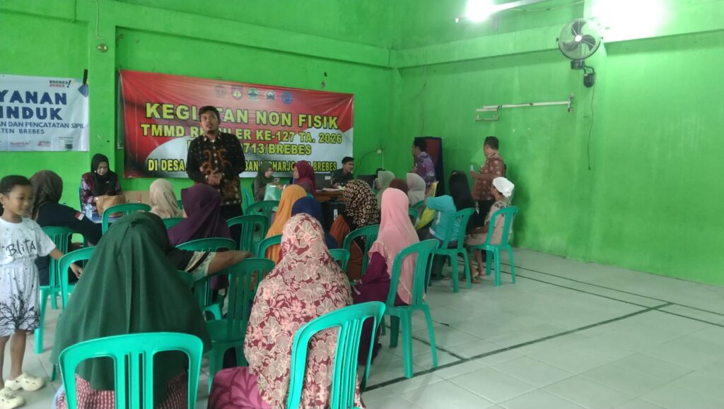 BREBES, BentangNews – Satgas TMMD Reguler ke-127 Kodim 0713/Brebes terus berkomitmen memberikan kemudahan bagi masyarakat desa sasaran. Selain pembangunan fisik, perhatian diberikan pada tertib administrasi kependudukan melalui jemput bola pelayanan Adminduk yang digelar di Balai Desa Cikuya, Kecamatan Banjarharjo, Kamis (12/02/2026).