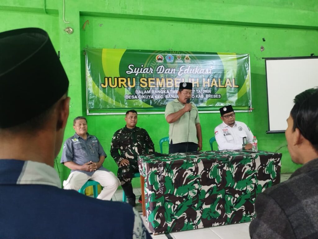 BREBES, BentangNews – Sinergitas Pengurus Dewan Pimpinan Daerah (DPD) Juru Sembelih Halal (JULEHA) Kabupaten Brebes dengan Kodim 0713/Brebes ikut mensukseskan program Non Fisik dalam rangka memperkuat pemahaman dan keterampilan terkait penyembelihan halal untuk Pengurus Masjid dan Mushola Desa Cikuya sebagai lokasi dilaksanakannya TMMD Reguler 127 TA. 2026.