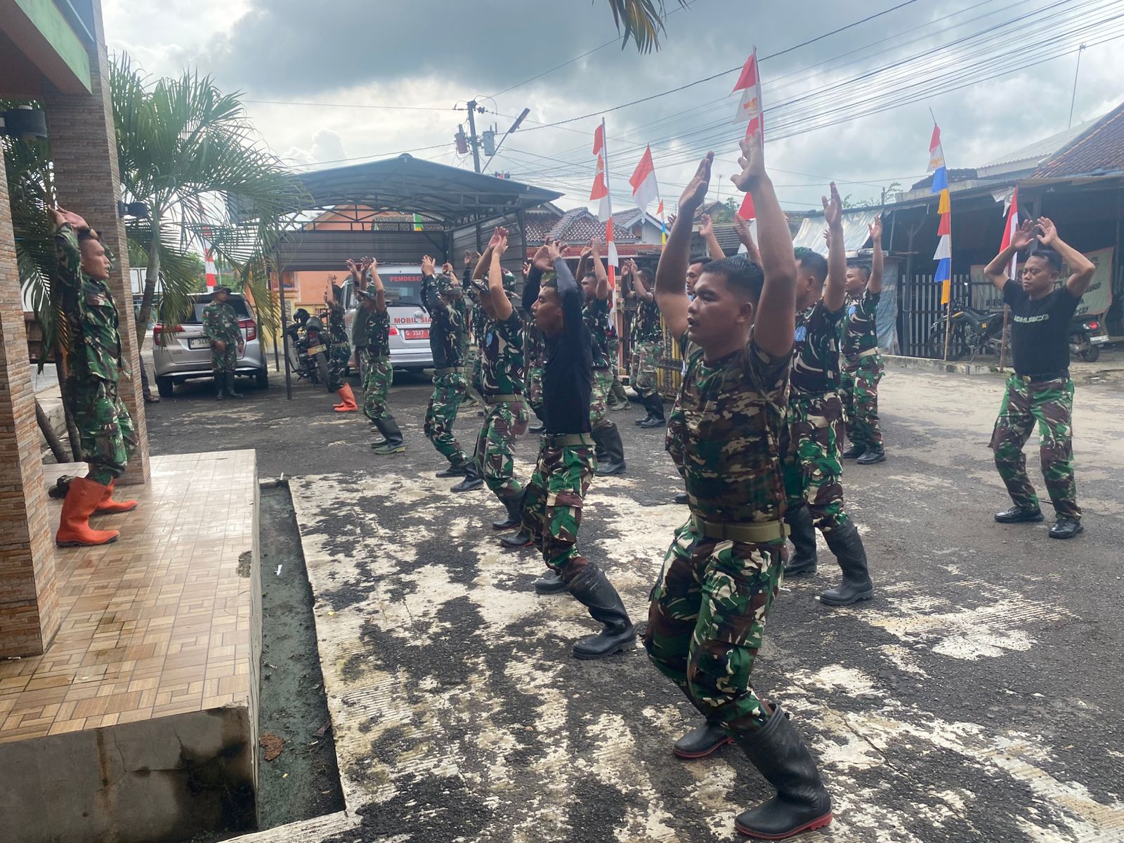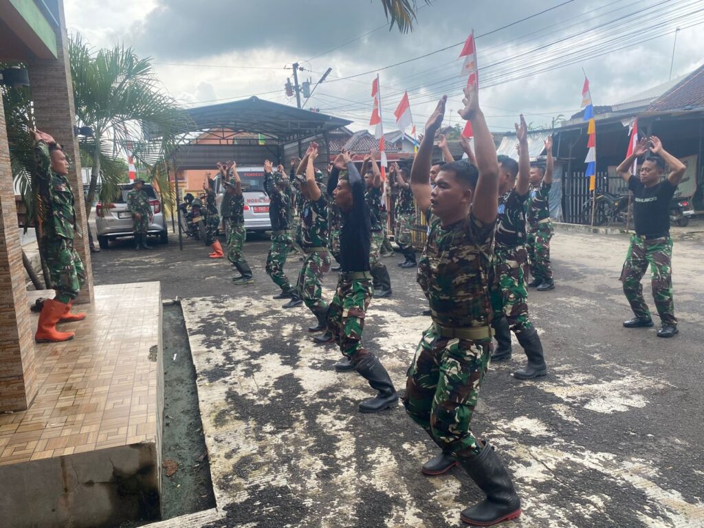 Kegiatan senam pagi ini diikuti oleh seluruh anggota Satgas TMMD, Dengan penuh semangat, para anggota melakukan berbagai gerakan peregangan dan latihan fisik ringan yang bertujuan untuk menjaga kondisi tubuh tetap prima serta mencegah kelelahan selama melaksanakan tugas di lapangan.