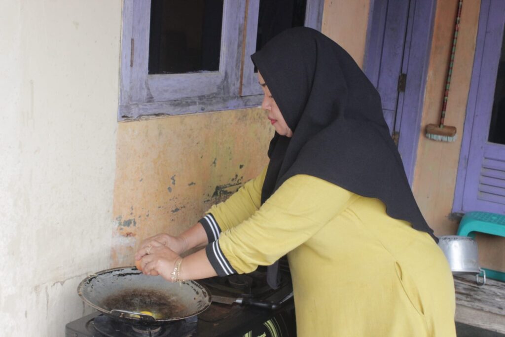 “Mereka sudah bekerja keras membangun desa kami, jadi sudah sewajarnya saya menjamu mereka dengan sebaik-baiknya, apalagi ini hari pertama puasa,” tutur Ibu Ro’ah dengan senyum ramah.(/Agus Supramono)