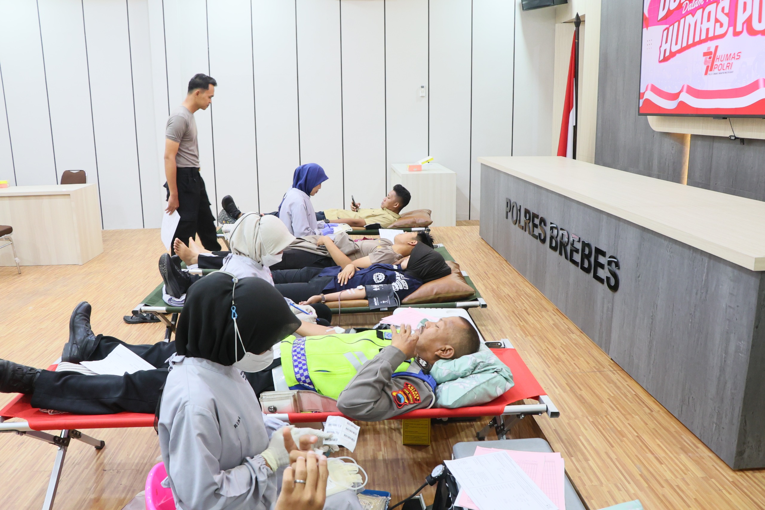 Bentangnews, Brebes – Ratusan personel Kepolisian Resor (Polres) Brebes bersama ASN, serta sejumlah elemen masyarakat, dan media berpartisipasi aktif dalam kegiatan bakti kesehatan berupa donor darah yang digelar di Polres Brebes, Rabu (22/10/2025)Aksi kemanusiaan ini diselenggarakan dalam rangka Peringatan HUT ke-74 Humas Polri. Kegiatan yang djuga dilaksanakan secara serentak oleh jajaran Polres di Jawa Tengah ini mengusubg tema “Polisi Humanis Harapan Masyarakat”. Bekerjasama dengan UTD PMI Kabupaten Brebe kegiatan ini bertujuan untuk membantu menambah ketersediaan stok darah di PMI setempat yang sangat dibutuhkan oleh masyarakat.