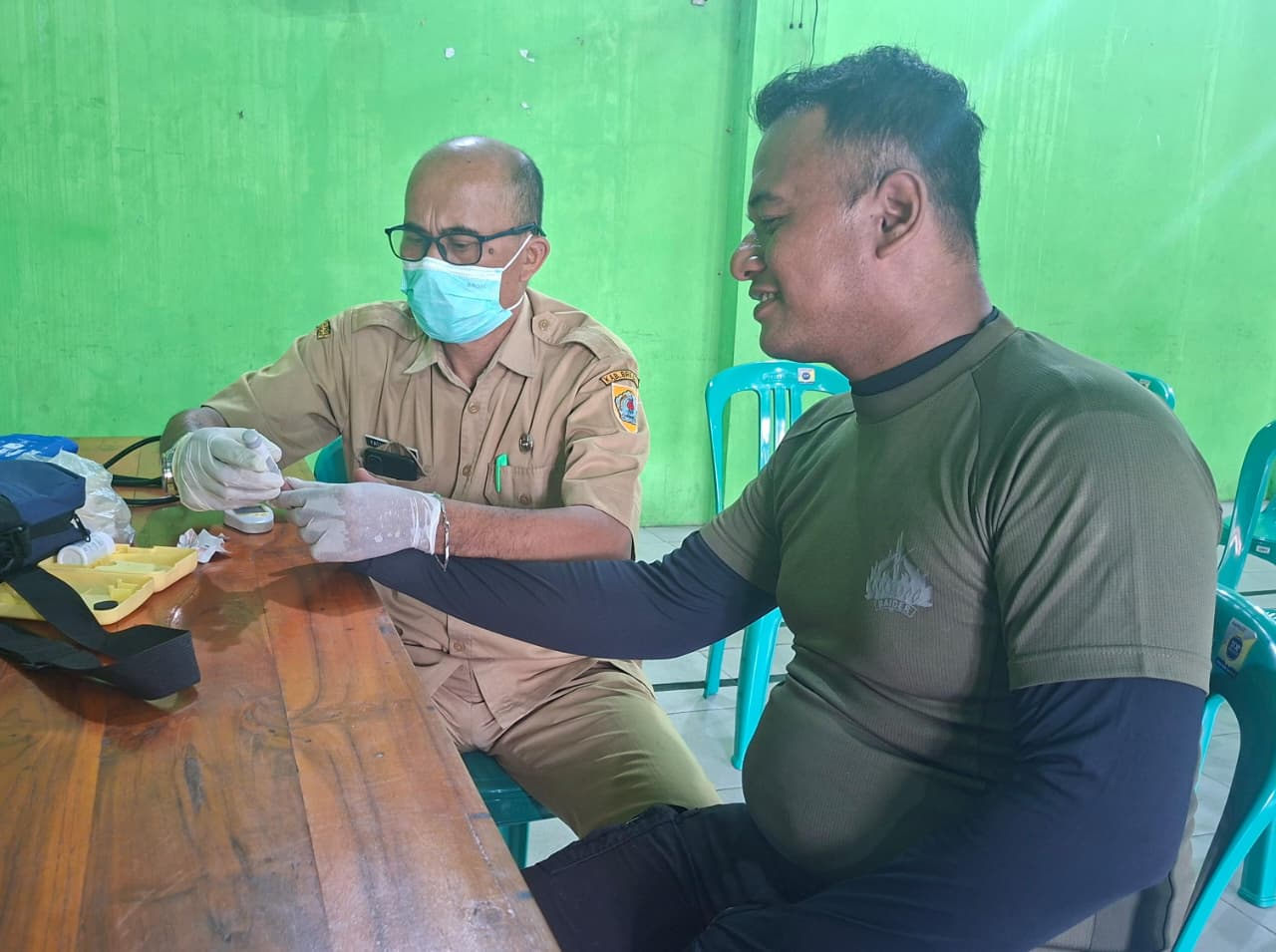 Hadir dalam kegiatan tersebut, Fathurohman, AMK, seorang perawat senior dari Puskesmas Banjarharjo. Dengan penuh ketelitian dan sikap ramah, ia melayani satu per satu anggota Satgas yang ingin memeriksakan kondisi tubuhnya.