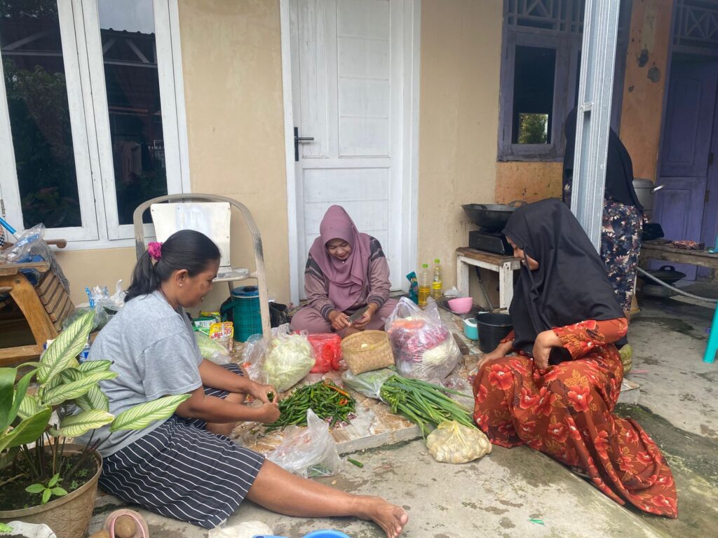Sejak pagi hari, para ibu-ibu dan warga bergotong royong di dapur, menyiapkan aneka hidangan sederhana namun penuh makna. Dengan penuh semangat, mereka memasak nasi, sayur, hingga lauk-pauk sebagai bentuk dukungan dan rasa terima kasih kepada prajurit TNI yang telah bekerja tanpa lelah membangun desa mereka.