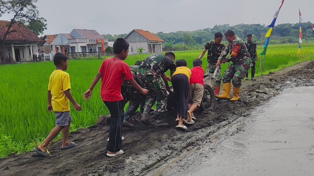 Aksi spontan anak-anak ini mencerminkan kemanunggalan TNI dengan rakyat yang bukan sekadar slogan, melainkan realitas di lapangan. Pembangunan jalan rabat beton ini merupakan salah satu sasaran fisik utama TMMD ke-127 Kodim 0713/Brebes yang bertujuan untuk memperlancar akses transportasi dan meningkatkan ekonomi warga desa setempat.(/Agus Supramono)