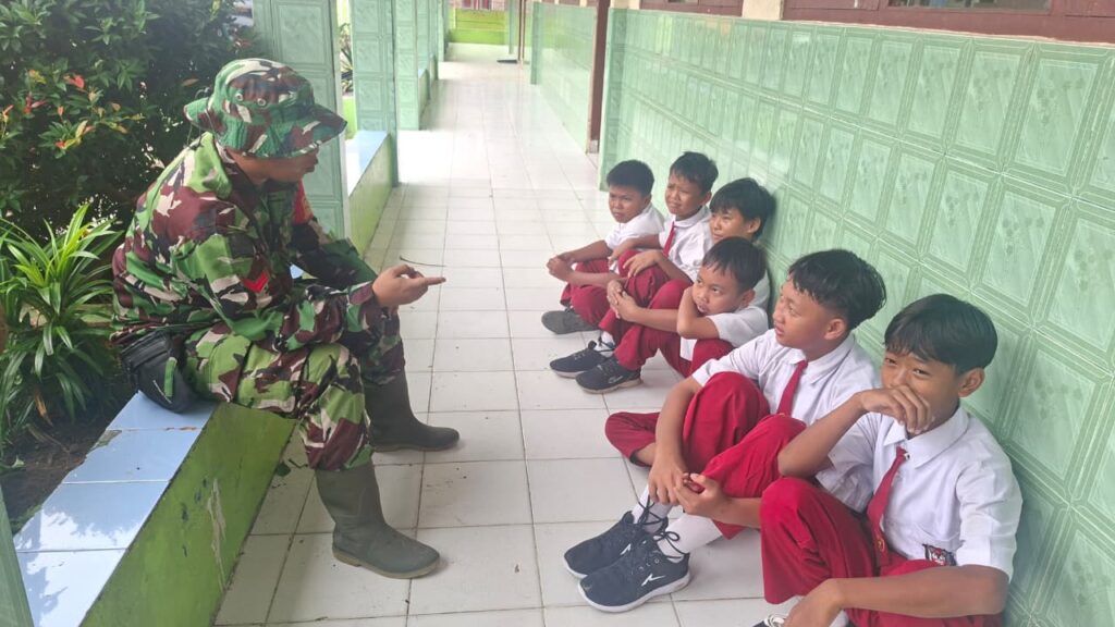 Ia adalah Koptu Hendra, Babinsa Koramil 14/Banjarharjo, yang hadir sebagai bagian dari Satgas TMMD. Bukan sekadar memberikan materi formal, Koptu Hendra memilih pendekatan yang lebih menyentuh hati, yakni melalui sesi bercerita dan dialog interaktif.