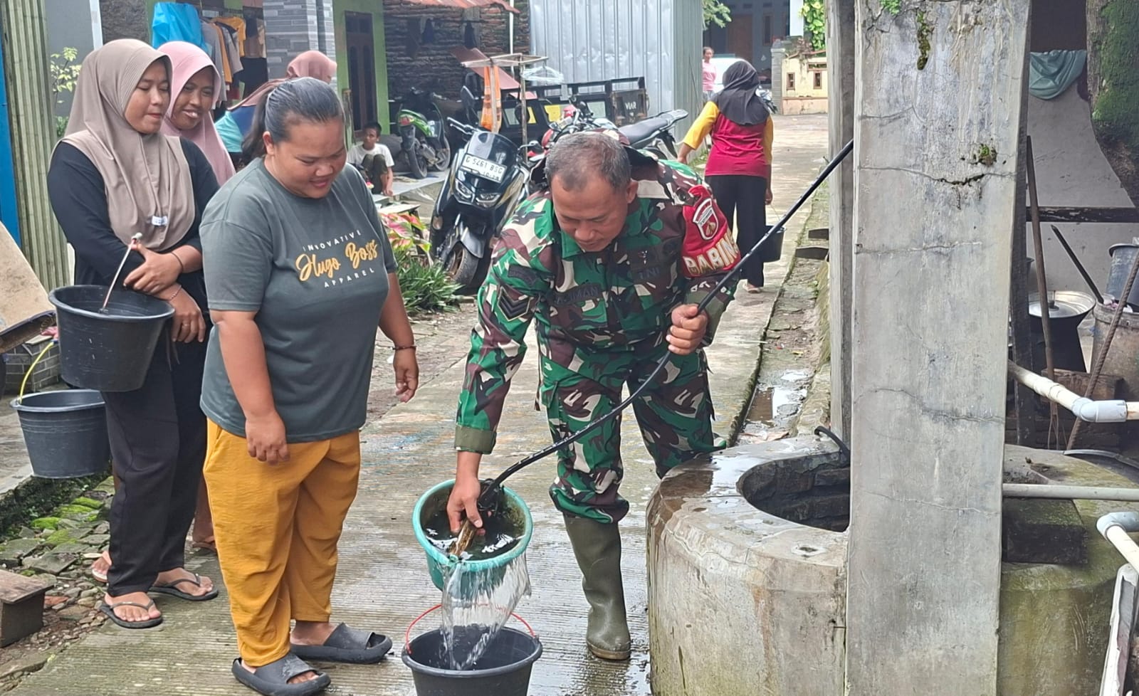 Kondisi sulitnya akses air bersih terungkap saat Serka Sagiman berbincang dengan warga di lokasi. Ibu Nuraini (34), salah satu warga, mengeluhkan bahwa sumur bor di rumahnya hanya menghasilkan air berwarna cokelat yang tidak layak konsumsi.