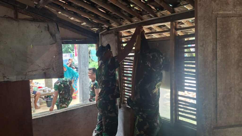 ​”Kami senang bisa bantu. Meskipun cuma angkat-angkat genteng, ini bentuk kepedulian kami kepada Ibu Rastip. Bersama bapak TNI, pekerjaan yang berat jadi terasa ringan karena dilakukan sambil bercanda dan penuh semangat,” ujar Rokhiah di sela-sela kegiatannya.